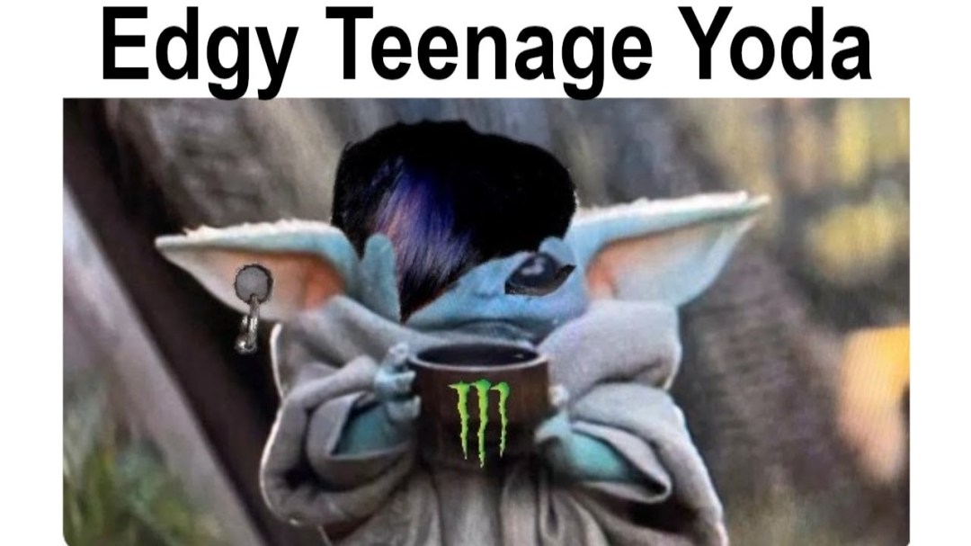 Next how does somebody become wise? There are some who walk the straight and narrow from a young age. They know their right from wrong early on and are a stalwart for good morals. But for most, they must learn along the way. And I’m just saying Yoda and his bounty hunter foster dad probably had some wild adventures. Some of his most memorable quotes were probably founded in his teenage years. “The greatest teacher, Failure is” was probably a reference to Yoda failing multiple drug test to get into the Jedi Academy. Or the famous quote, “You must unlearn what you have learned” is rooted in Yoda’s years of misusing the force to control the minds of the unexpected Gungan. And finally, his iconic “Fear is the path to the dark side. Fear leads to anger. Anger leads to hate. Hate leads to suffering.” Now there is a lot to unpack here and probably the crux of my argument. How would Yoda know what leads to the dark side? You could say it was through his diligent studies in the Jedi Temple. But simply put, you’re a simpleton. It is commonly known that experience is the best teacher. So, I hate to say it to you kids, but Yoda probably dabbled in the dark side as a teen. You could consider it like going through a goth phase. Except evil. Now maybe it was his fear of getting caught smoking the Mary Jane. Then maybe the Jedi temple caught him and took away his light saber. And maybe he was so pissed off at his Jedi teacher that he started to wear black underneath his robes and placed a stolen kyber crystal in his super-secret hidden light saber therefore turning it red. We may never know to be honest, but I’m probably right and Yoda’s years as a rebellious culminated with him dabbling as emo-sith teen.